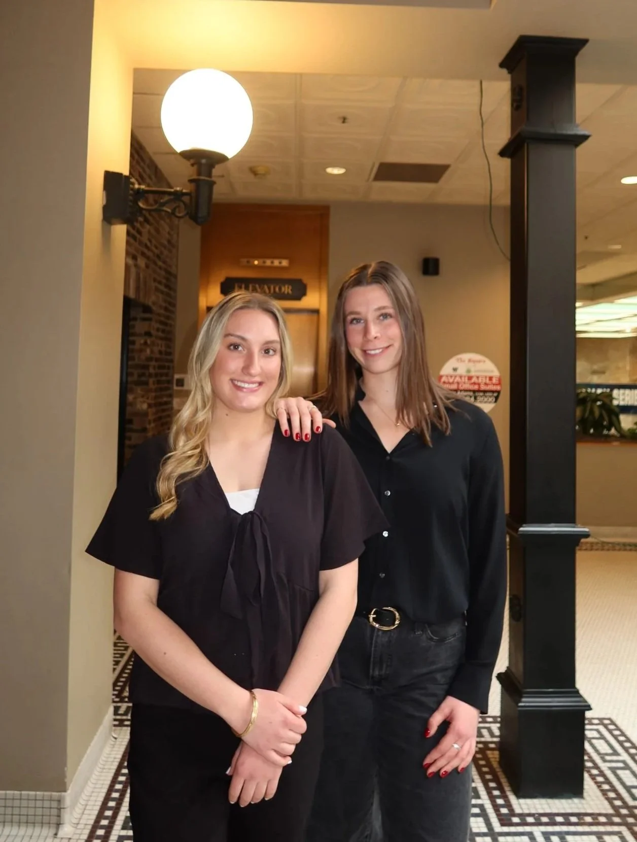 Vice President, Jessica Greunke (left), and Firm Director, Noa Pitstick (right) at the Grehan Associates photoshoot for the Spring 2026 semester.